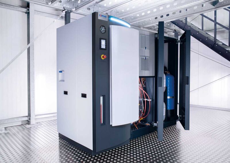 La nueva INTERFAZ HOMBRE-MÁQUINA garantiza un control fácil e intuitivo en 16 idiomas. Cuando la demanda de vapor varía, la tecnología permite un ajuste inteligente de la presión y reduce el consumo. También permite MONITOREO DE CONDICIÓN y SERVICIOS REMOTOS y cumple con todos los requisitos para la Industria 4.0.