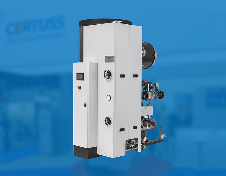 Al utilizar el principio de la caldera de tubos de agua, la tecnología CERTUSS para generar vapor ofrece la máxima seguridad, fiabilidad y disponibilidad instantánea de vapor de alta calidad.